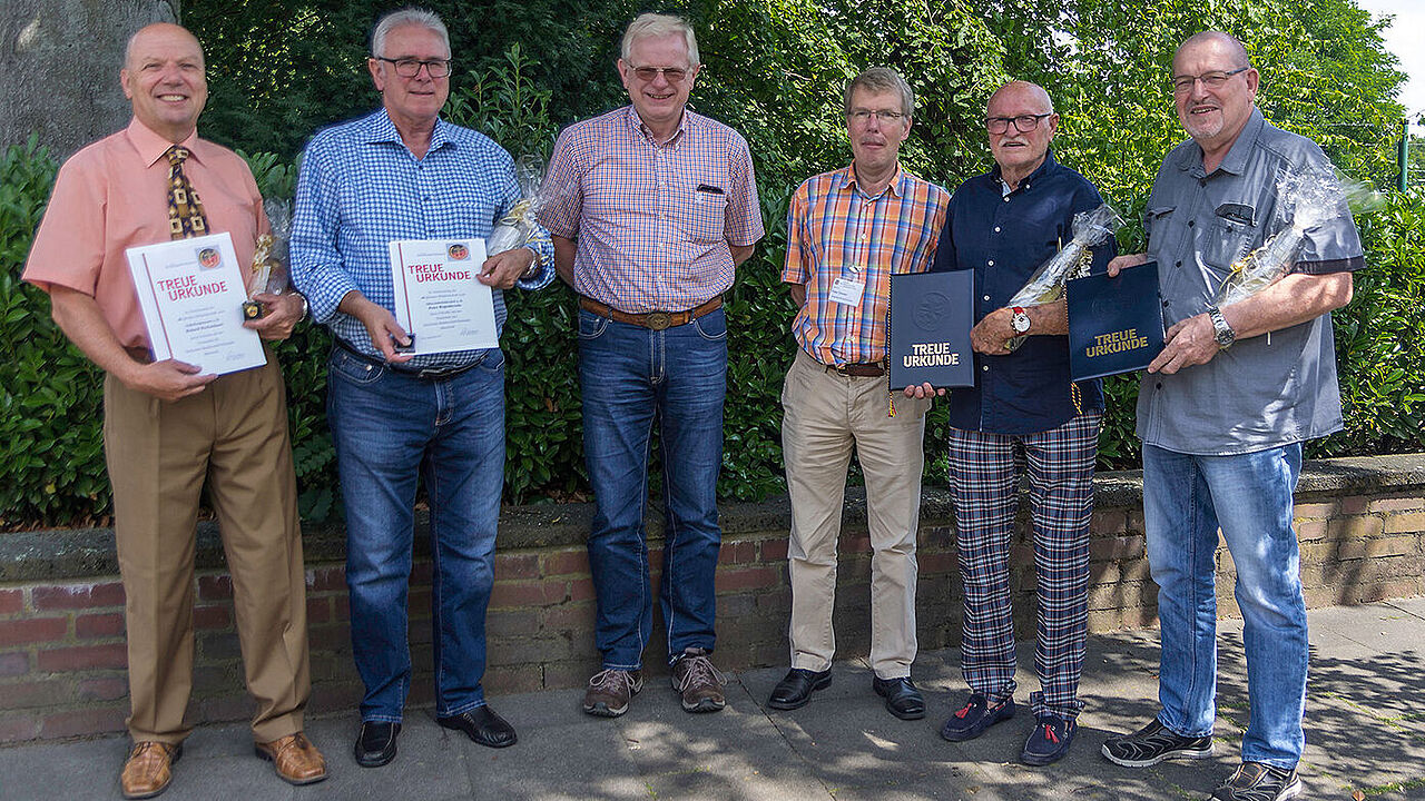 Volker Jung und Peter Donner (Mitte li/re) im Kreise der Jubilare (Foto: KERH Köln-Porz-Wahn)