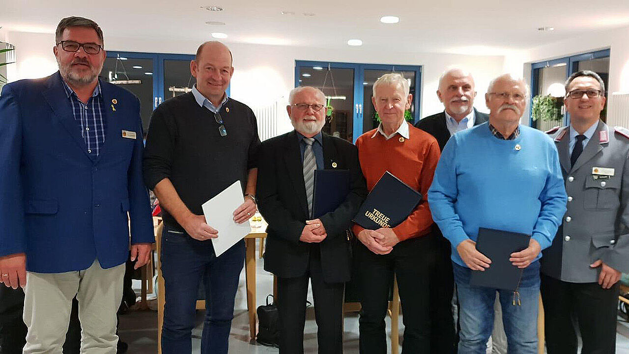 Die Treueurkunde und Nadel erhielten folgende Kameraden:60 Jahre Mitgliedschaft - Stabsfeldwebel a.D. Karl-August Roß.50 Jahre Mitgliedschaft - Stabsfeldwebel a.D. Werner Rüb, Hauptmann a.D. Hermann Schuster sowie Stabsfeldwebel a.D. Reinhold Korbella und40 Jahre Mitgliedschaft - Hauptmann a.D. Dietmar Kasperski. „Als verlässliche Kameraden, vielfach selbst in Mandaten tätig, seien sie die Stützen des Verbandes und unentbehrliche Helfer in der Verbandsarbeit“ so Grünewald zu den Kameraden in seiner Laudatio. Abschließend verabschiedete Grünewald noch Hauptmann a.D. Ernst Wendland aus dem Kreis der KERH Mayen-Andernach-Mendig. Dazu übergab er Wendland, der nach 8 Jahren als Vorsitzender der Ehemaligen im Landesverband West bei den anstehenden Wahlen nicht mehr kandidieren wird, ein Geschenk zur Erinnerung an die gemeinsame Zeit.