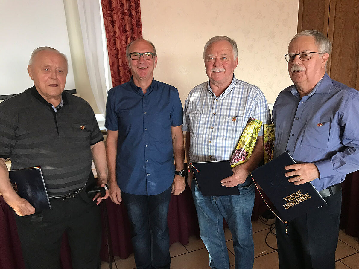 KERH Vorsitzender Georg Kühner übergab in Trier die Treueurkunden/-Nadeln an Stabsfeldwebel a.D. Edmund Hoffmann, Oberfeldwebel d.R. Uwe Glaubrecht und Oberstleutnant a.D. Otto Zimmermann Foto: ERH Trier und Umgebung